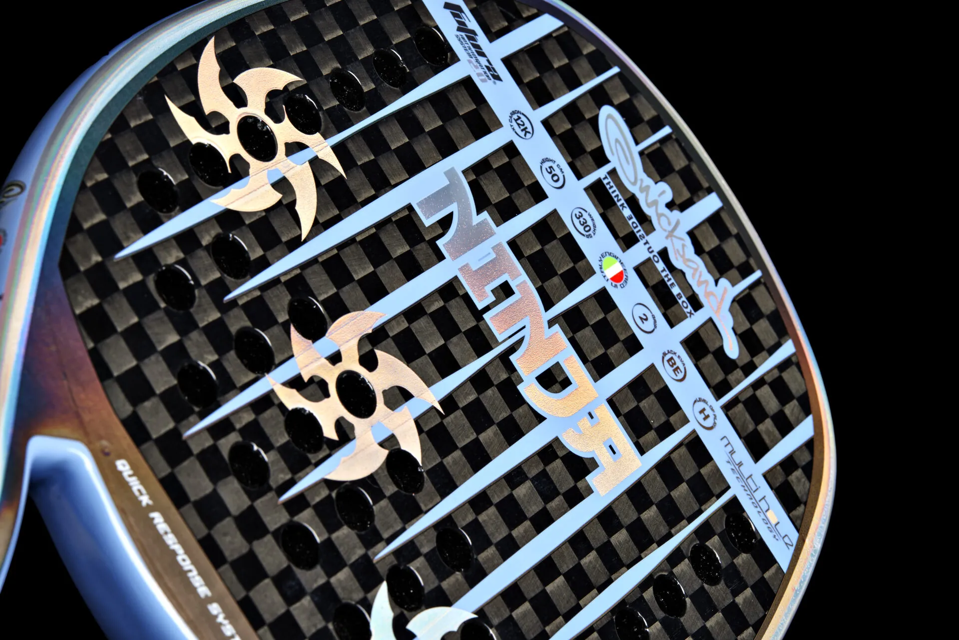 100 % anglies pluošto rėmas, skirtas žaisti aukšto lygio raketėmis.